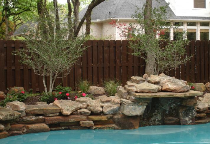 Waterfall pool with Yaupon Holly Trees