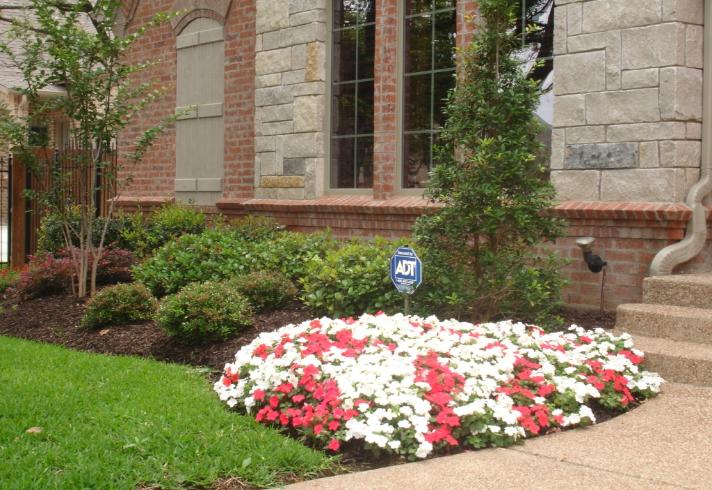 Front entry with Red and White Impatiens